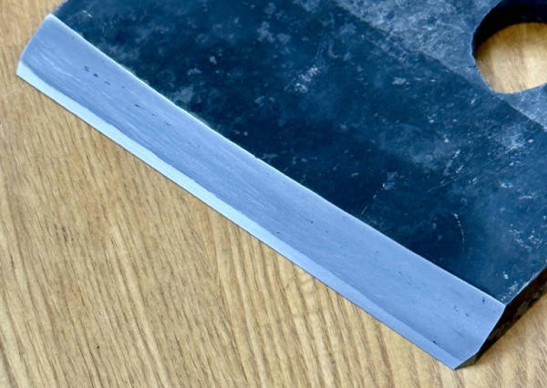- 鎬側、裏透き側、平面に研ぎ上げてありますから、刃先は直線に仕上がっています。