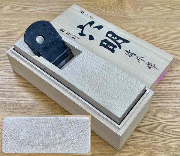 錬鉄は炭素量が少なく研ぎやすい地金で鉋の地金として最適な鉄です、鋼は定評のある青紙1号で、世界の安来鋼と言われた日立金属で製造された鋼。その鋼を鉋鍛冶の水野清介氏がエアハンマーで力強く鍛え上げた鉋です。
