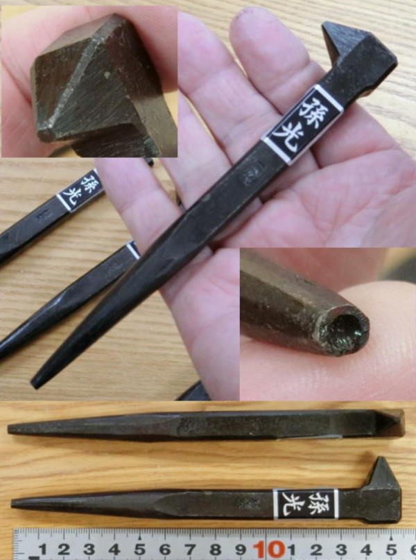 先端は丸頭の釘を打っても逃げないように蛸口型になった釘〆です。