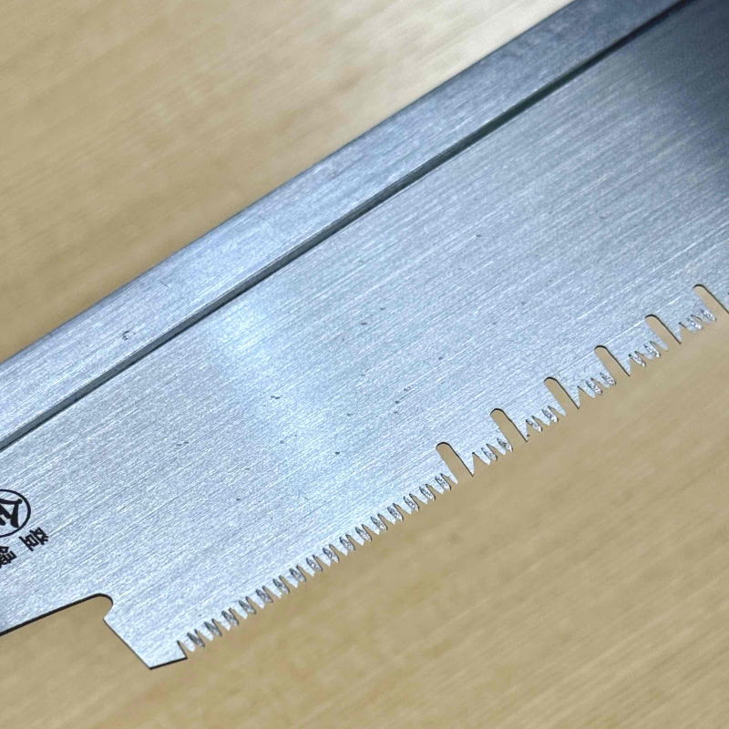 一見粗そうに見えますが、挽いた感触は引きが軽く振動少なく、早く下りて、もちろん切り口はとても綺麗です。他の導突鋸をお持ちの方なら、この品の下りて行く速さと、切り口の綺麗さに驚かれます。