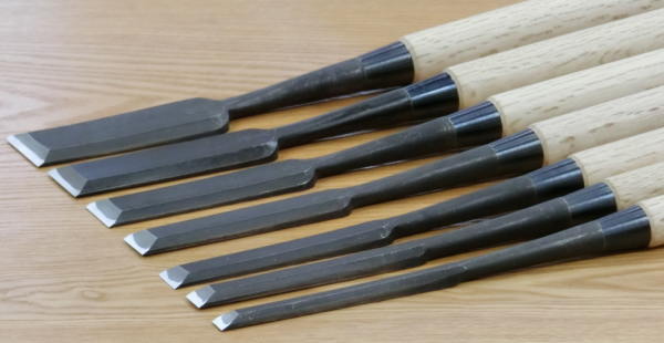 多忙な鑿鍛冶大内さんの薄鑿、切れ味良く、裏の平面精度が良い。在庫が無くなると長期入荷待ちになります。
